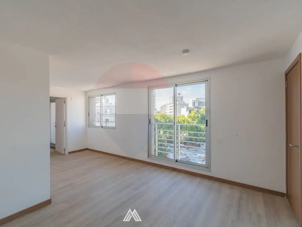 Apartamento de 1 dormitorio en el piso 8, vista lateral despejada, con orientación NE, lo que lo hace muy luminoso y con sol todo el día.