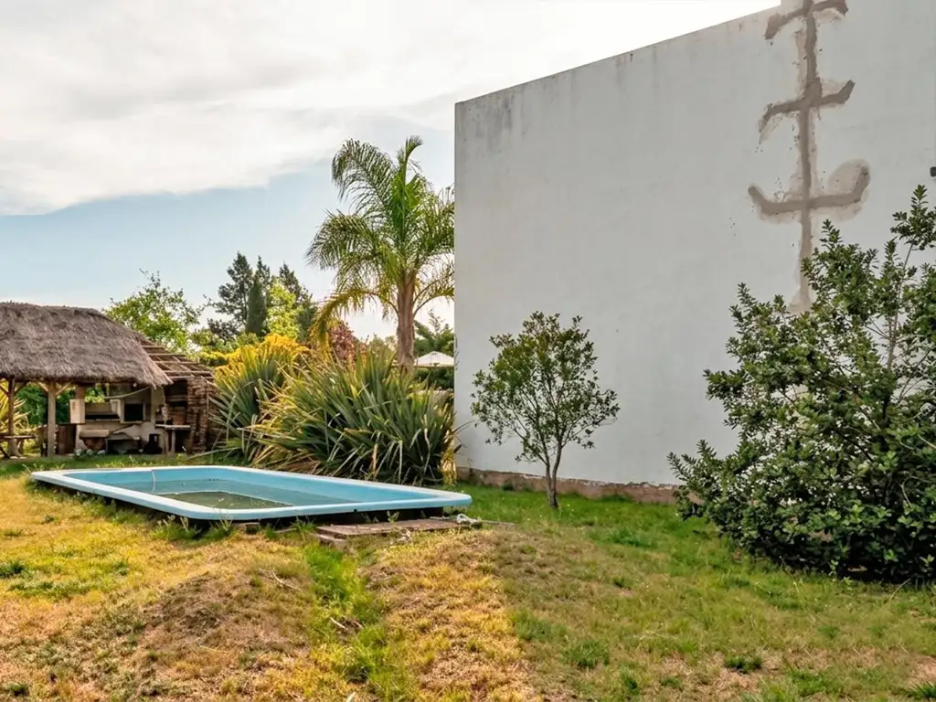 En uno de los lotes, cuenta con una pileta rectangular de fibra y un quincho semicubierto.