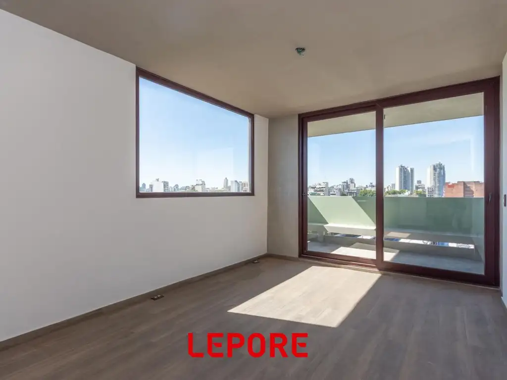 Amplio ambiente luminoso divisible con balcón. Cuenta con cocina semi integrada con equipamiento bajo y sobre mesada, piletas de acero inoxidable y anafe eléctrico de dos hornallas. La unidad se entregara con pisos de porcelanato símil madera, carpinterías de PVC con DVH, equipo Split frio/calor y equipamiento sanitario de primera calidad.