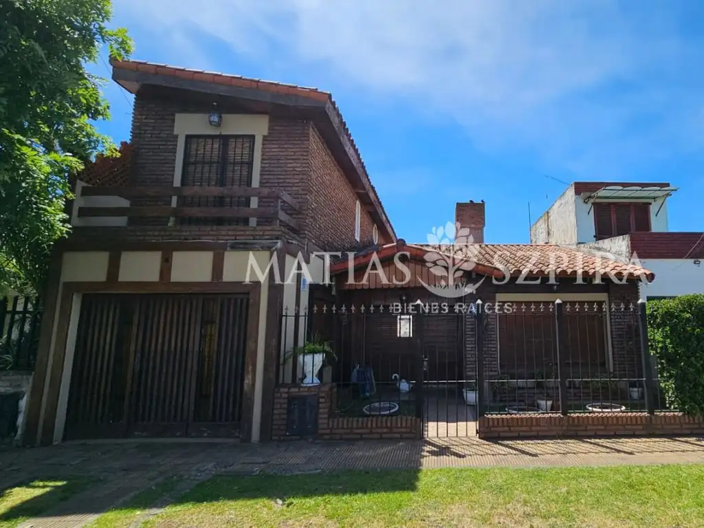 Chalet clásico en inmejorable ubicación, a tan sólo dos cuadras de Colectora, próximo a subida a Acceso Oeste. Desarrollado en dos plantas, posee en planta baja living de recepción con ventanal a la calle y hogar a leña, comedor principal, amplio living principal con salida al jardín, cocina comedor con acceso a patio con jardín, baño completo, y habitación con placard.En planta alta, cuenta con dos habitaciones de cómodas dimensiones (una con balcón al frente) y un baño completo. Posee cochera cerrada para un vehículo. Jardín al frente. Rejas en todas las aberturas. Muy buen estado. Terraza. Cuarto de guardado. Superficie total de 200 m2 (168 m2 cubiertos).