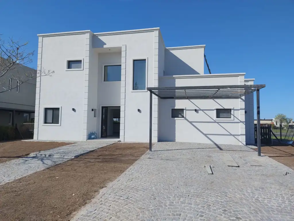 frente de placard e interiores, Dormitorio en suite, vestidor completo. Los techos tienen terminación en determinados ambientes con molduras. 77Los pisos de toda la casa son de porcelanato/porcelánico (Ver Stock). Los pisos de terraza y exteriores son de cerámica antideslizante. La galería tiene parrilla y bacha. La piscina de 8 x 3,5 m. con bordes atérmicos, playa humeda, lucesW y pintada.