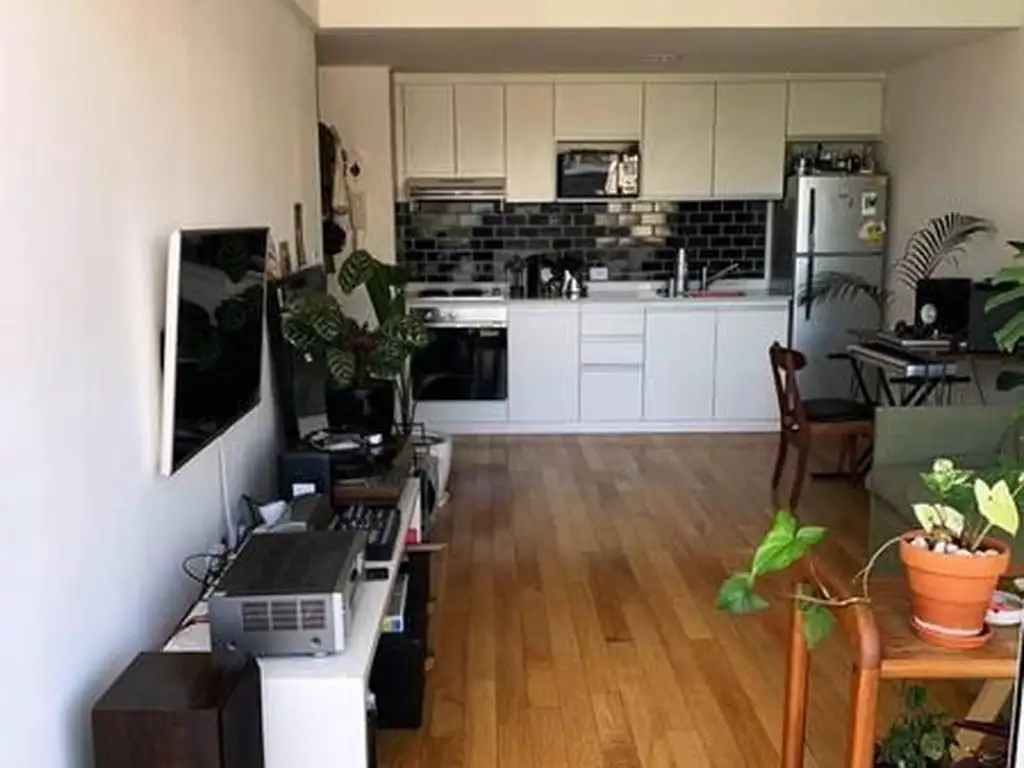 Departamento muy luminoso con cocina americana, balcon con vista abierta. Cochera fija. Baño completo amplio, aire acondicionado en cada ambiente.
