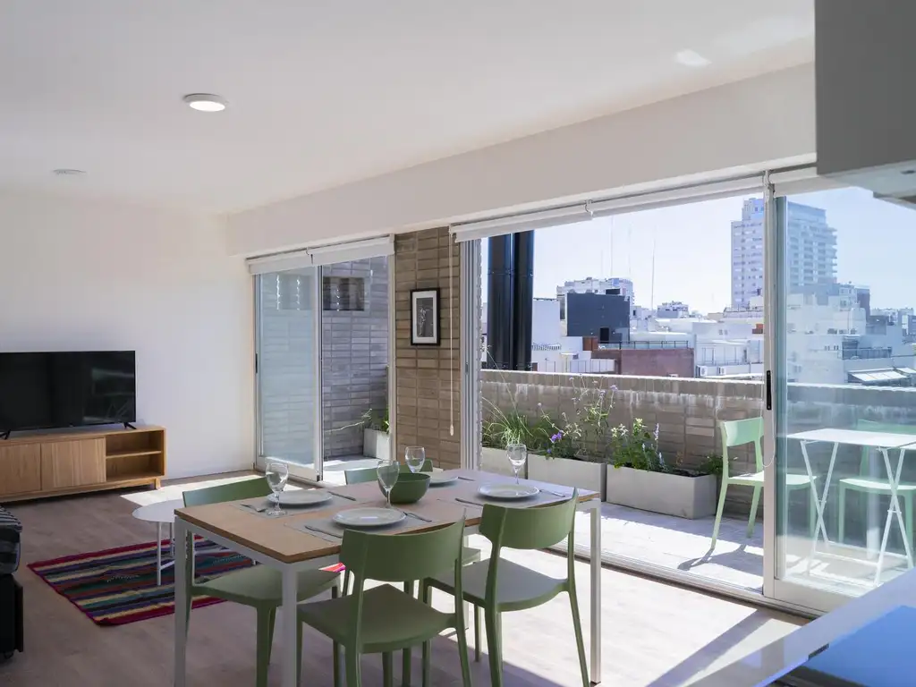 La unidad se caracteriza por sus terminaciones de alta calidad. El living comedor cuenta con un balcón al frente que ofrece vistas despejadas. La cocina está completamente equipada con mesada, cocina y horno eléctrico, y conexión para lavarropas. Los pisos de madera y los sanitarios de primera línea FV, junto con la bacha Johnson, destacan por su calidad. Incluye aire acondicionado frío/calor Samsung Inverter y puerta de ingreso codificada, ideal para alquileres temporarios.