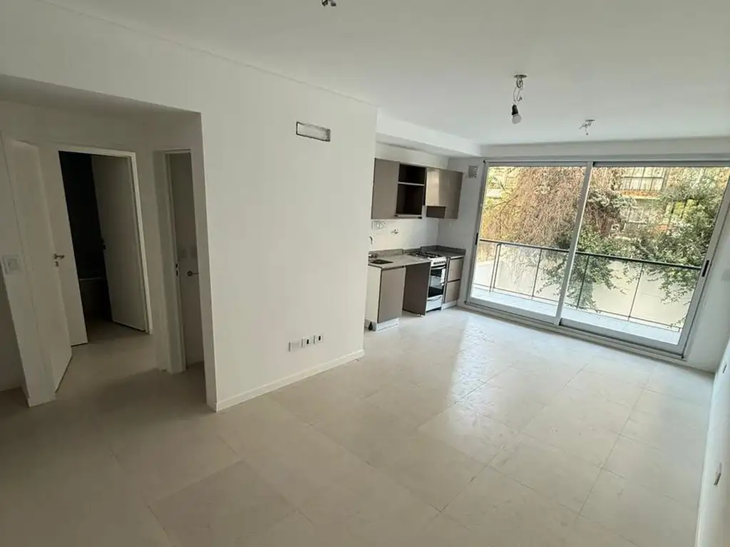 Living comedor con salida balcón corrido al contrafrente, con cocina a gas incorporada con espacio para heladera grande y conexión para lavarropas. Equipado Con Aire Acondicionado en Living y Dormitorio ente, con cocina a gas incorporada con espacio para heladera grande y conexión para lavarropas.