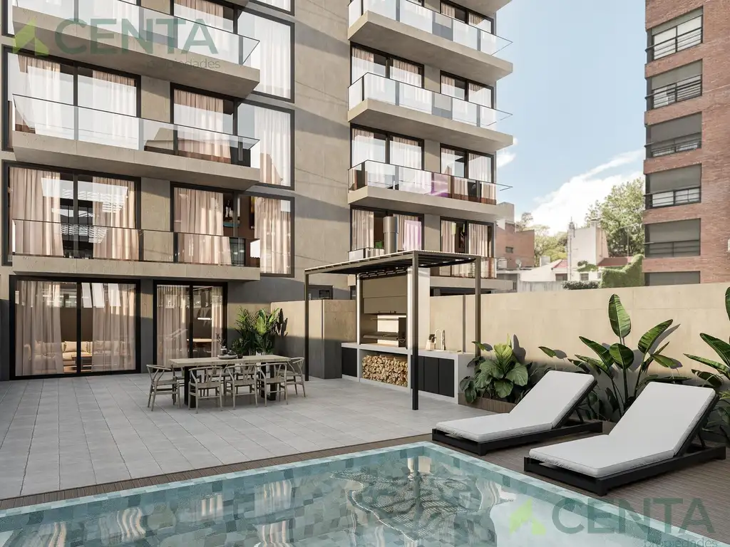 La unidad dispone de living comedor integrado, cocina moderna, dos dormitorios y baños completos, logrando comodidad y practicidad para la vida diaria.