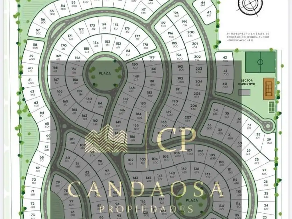 Atributos: Excelente calidad con todas sus redes subterráneas: agua, cloaca, electricidad y gas. Caminos asfaltados con cordón cuneta, cerco perimetral y edificio de acceso. Área deportiva con una cancha de tenis, una de fútbol, una chancha de paddle, un salón de usos múltiples y seguridad 24 hs.