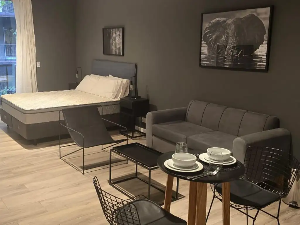 Amoblado full: Sommier de 2 plazas, sofá, mesa con sillas, TV, WIFI, Heladera con freezer.