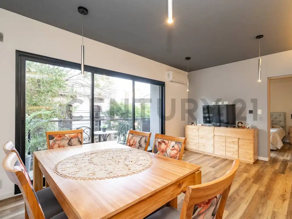 -Living-comedor con salida a balcón corrido. El balcón tiene espacio para mesa y sillas.