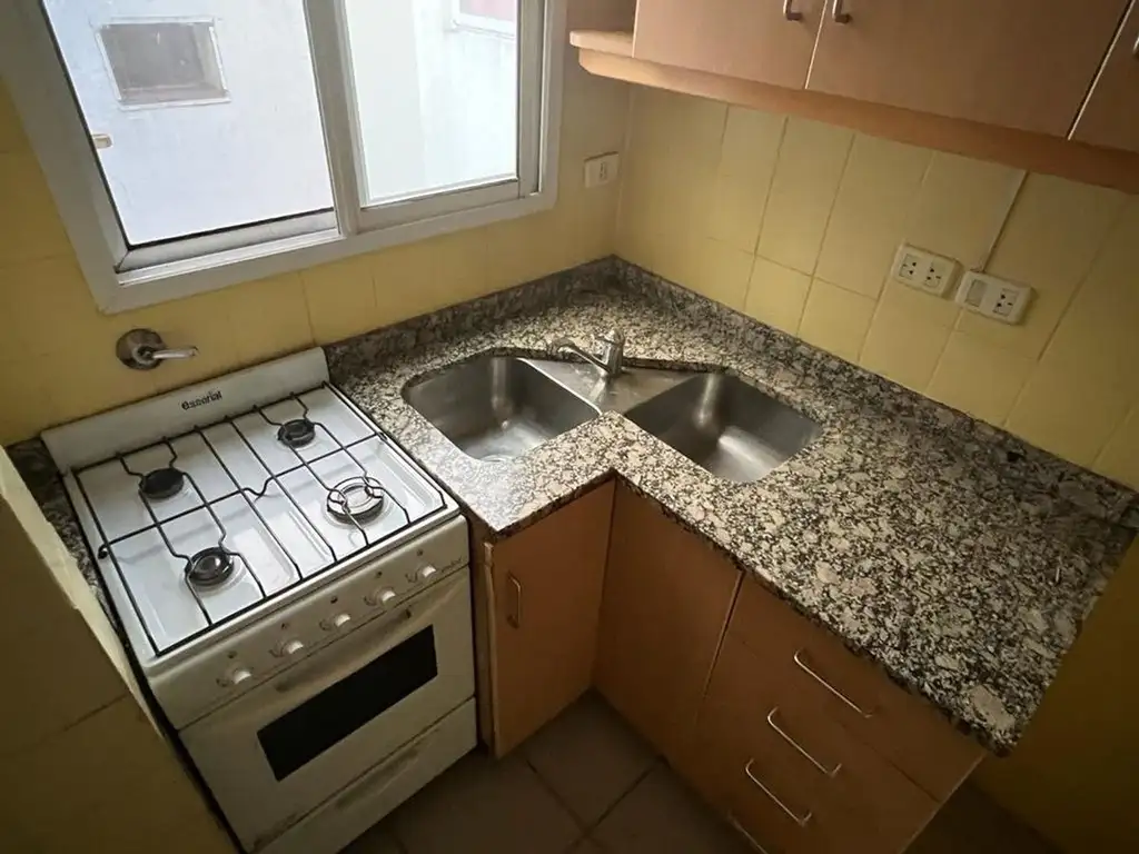 Cocina completa con muebles alto y bajo mesada en excelente estado y amplio lugar de guardado.