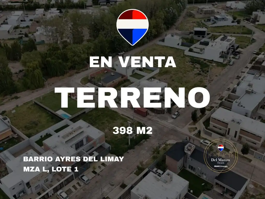 Este terreno de 398,06 m² se encuentra ubicado en el exclusivo Barrio Residencial Ayres del Limay, en la ciudad de Neuquén. Emplazado en la Manzana L, Lote 1, el predio ofrece una excelente ubicación dentro del barrio, rodeado de un entorno natural único.