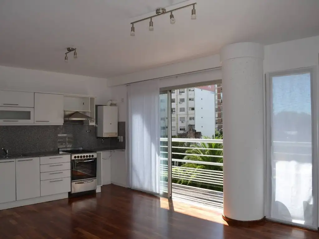 En la planta principal se desarrolla un living comedor amplio con cocina integrada, con salida al balcón y grandes ventanales. La calidad de las aberturas con doble vidrio hermético (DVH) permite disfrutar de la luz natural y del confort interior, incluso considerando la cercanía a la vía del tren.