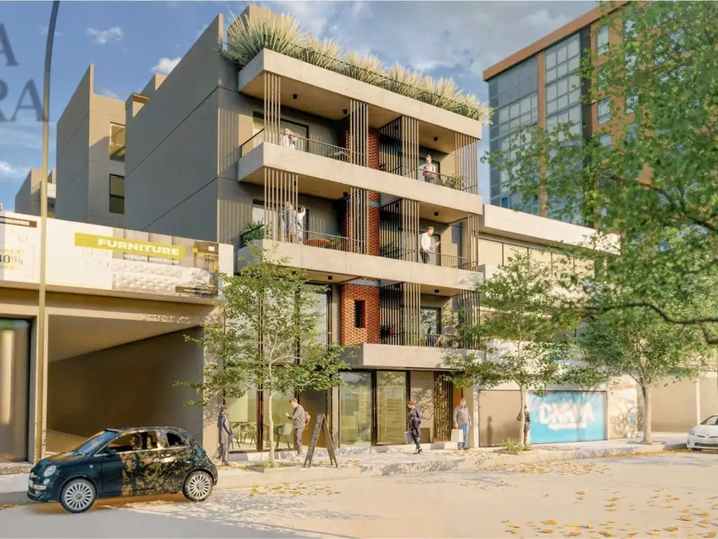 -Un exclusivo edificio residencial de 6 pisos, con 38 departamentos de diseño moderno y un local comercial en planta baja, que potencia el valor de la inversión y la comodidad urbana.