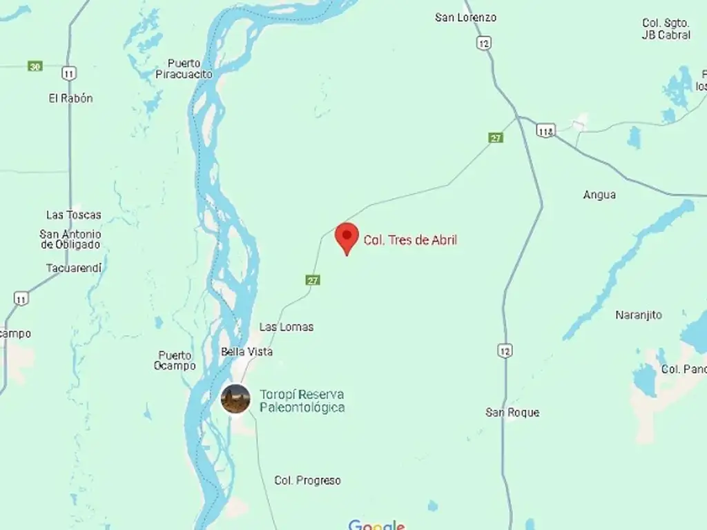 Campo de 160 hectáreas y está ubicado en zona Torre Cue (Zona Alta no inundable) , departamento de Bella Vista, Corrientes.