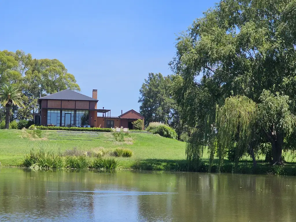 Casa principal (Proyecto del Arquitecto Diego Félix San Martín). Ladrillo visto y chapa acanalada, con amplios ventanales.