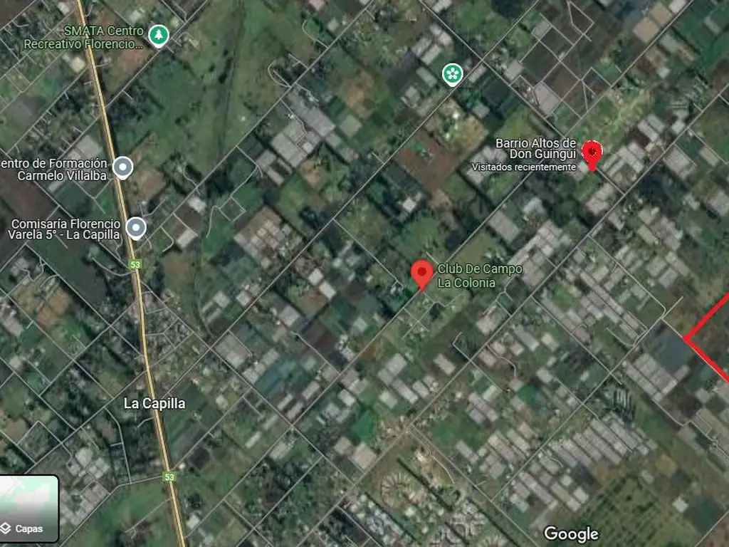 Ubicado sobre calle 517, (continuación Av. Sarmiento) a solo 10 cuadras del asfalto, en una zona de quintas de cultivo y cerca de dos barrios cerrados.