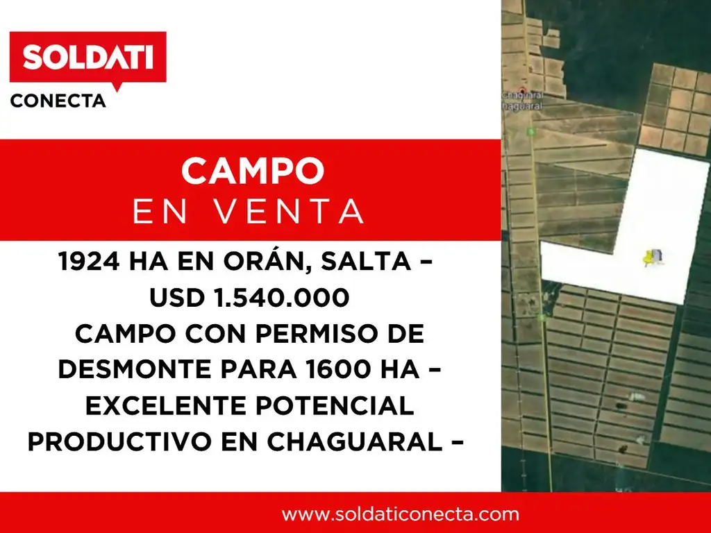 CAMPO DE 1924 HA CON PERMISO DE DESMONTE DE 1600 HA EN CHAGURAL - DTO DE ORAN - SALTA