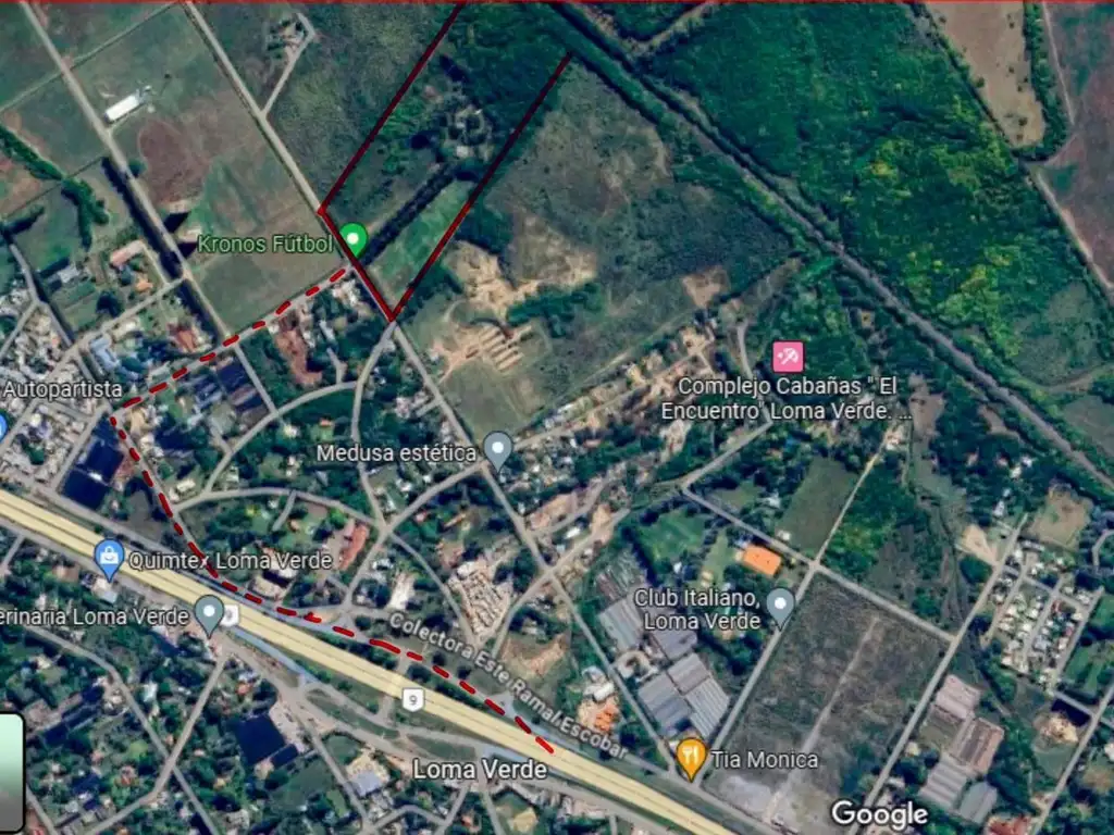 Lote de casi 9has en Loma Verde, Escobar, con mejoras, arbolado y con canchas de futbol. El valor es por m2