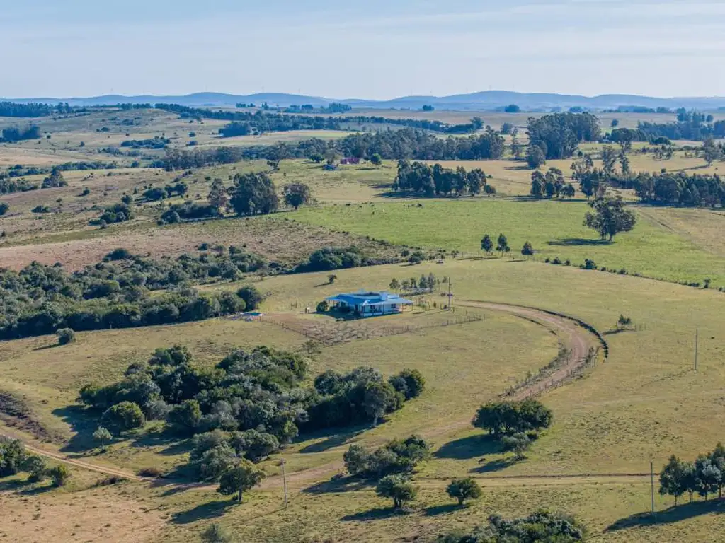 Casa principal con 2 dormitorios, ubicada en una loma con vistas panorámicas a todo el campo.