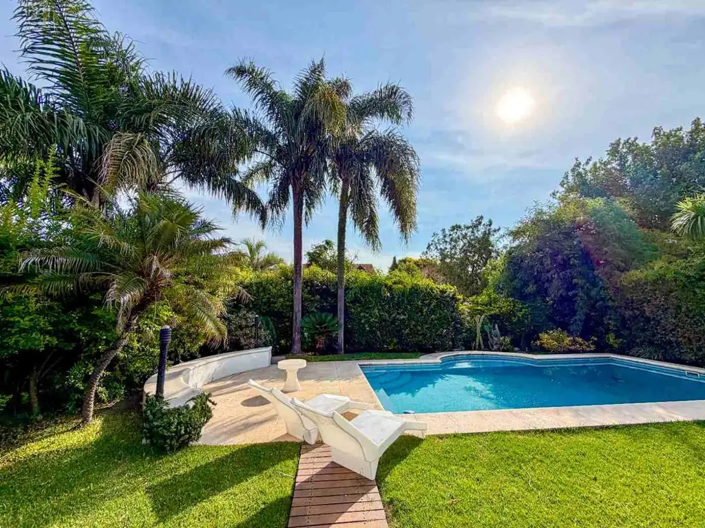 Jardín con excelente parquización, galería con parrilla y bacha, riego automático. Piscina revestida de 8 x 4 m con solárium y baño de pileta calefaccionado. Espacio para 5/6 autos y depósito.