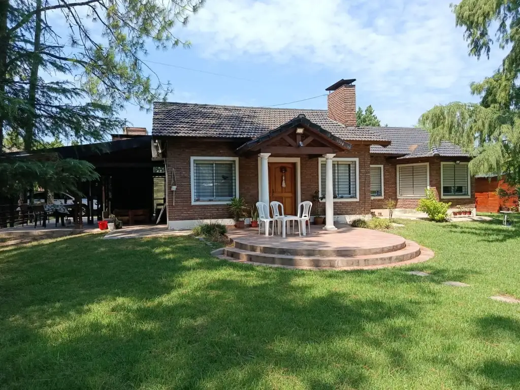 Casa de dos dormitorios, y comodín, cochera cubierta para dos vehículos. Amplio jardin con piscina añosa arboleda.