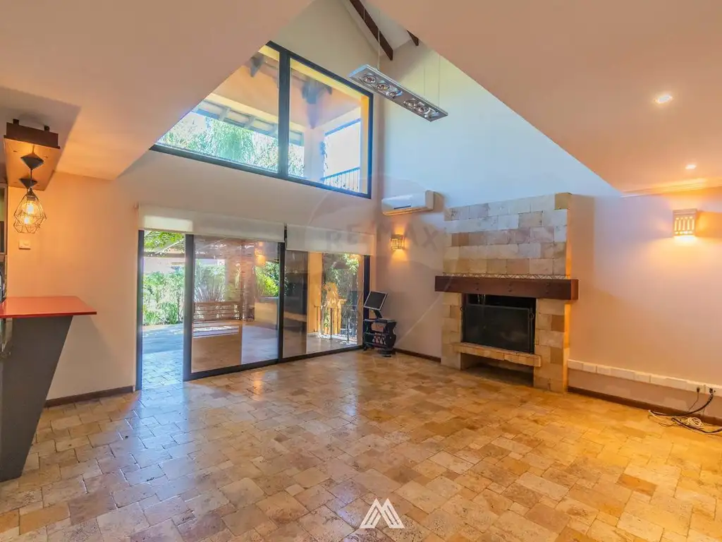 Estar con doble altura con muy buena iluminación ya que tiene grandes ventanales hacia la pergola y el jardín.