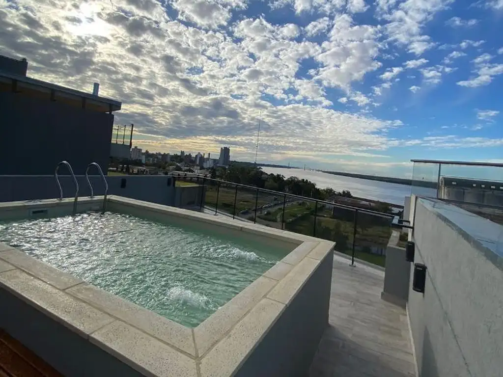 Terraza con piscina con excepcional vista al rió, con quincho.