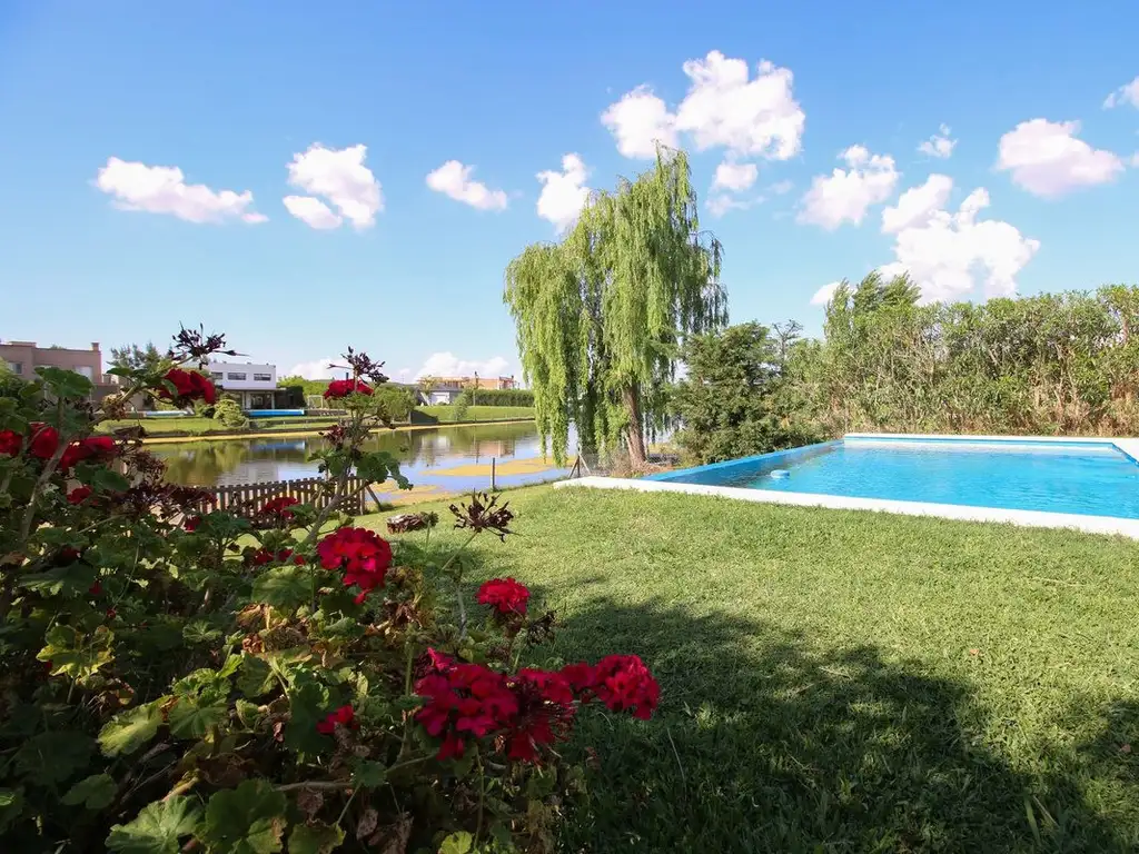 La planta baja ofrece un amplio living y comedor con salida a la galería, con vistas al parque y la laguna. Además, cuenta con un espacioso escritorio o 5to dormitorio y una toilette de recepción. La cocina es de amplias dimensiones, con lavadero separado, y cuenta con una habitación y baño de servicio.