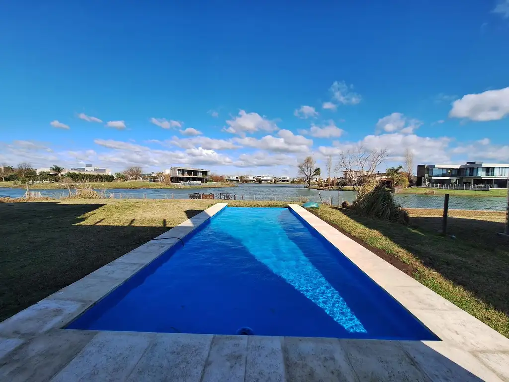 Exclusiva casa de 280 m2 cubiertos sobre un lote de 814 m2 ubicado en una inmejorable esquina de agua, que regala un espejo de laguna único y encantador.