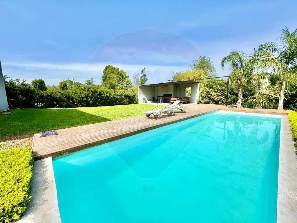 Ubicada frente al Club Champagnat, esta residencia de planta baja ofrece un diseño pensado para la máxima intimidad y el disfrute del entorno natural.