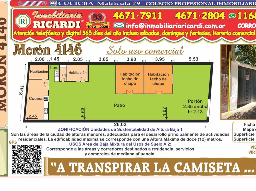 LOTE PROPIO 8.61 x 26.02 = 224 m2 de tierra y 124 m2 cubiertos