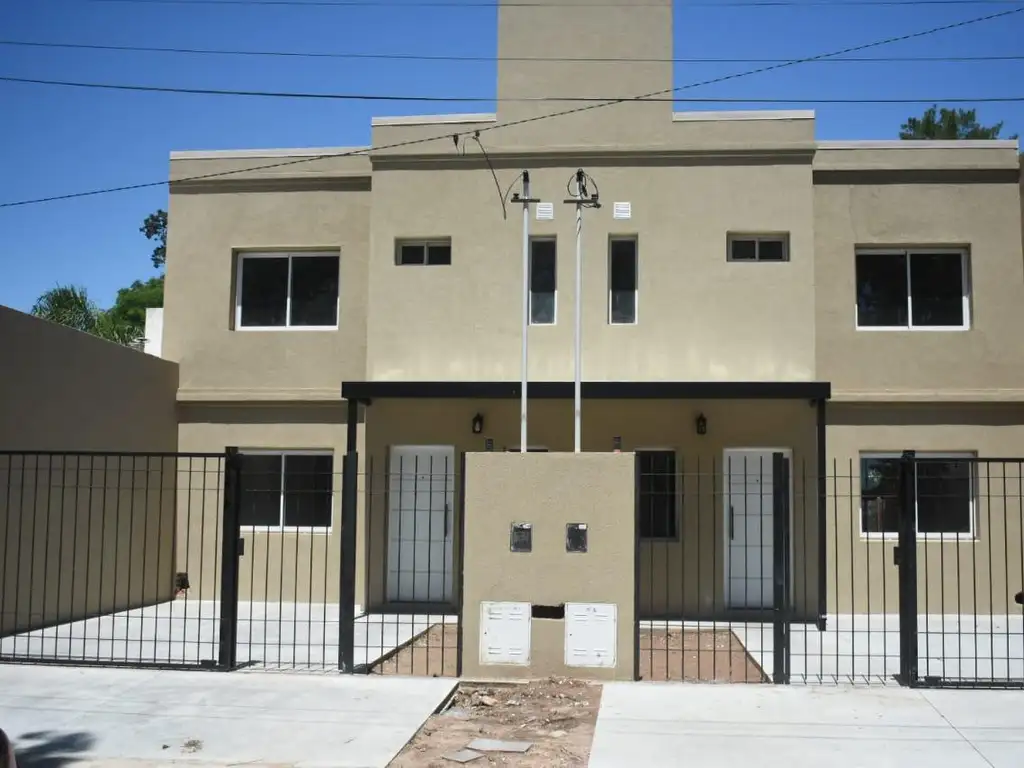 Cochera con portón de hierro corredizo, galería cubierta con parrillero, jardín grande trasero exclusivo, 3 dormitorios uno con Placard completo con puertas corredizas y cajones, 2 baños, cocina comedor completa con isla y living integrado