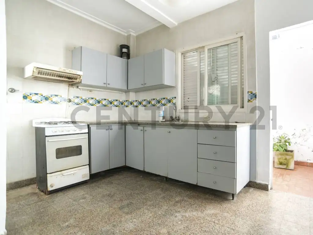 Hall de acceso semi cubierto. Living con estufa hogar a gas. Cocina completa, con muebles bajo y sobre mesada y salida a ambos patios (uno con lavadero). Un dormitorio con ventilación a patio trasero. Segundo dormitorio. Baño completo con ducha. Cochera cubierta para un auto. Sótano debajo de espacio guardacoche de 20 m2.
