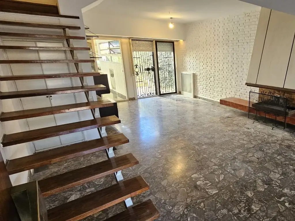 Acceso a planta alta por escalera con estructura de hierro y escalones de madera maciza. En el bajo escalera tiene un pequeño placard.