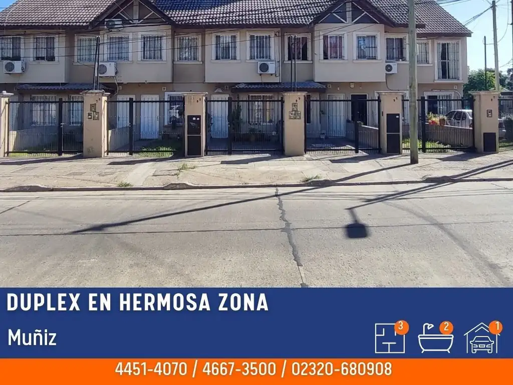 HERMOSO DUPLEX DE 76 M2 CON LIVING COMEDOR, TOILETTE, COCINA SEPARADA AMOBLADA CON BAJO MESADA, PATIO INDIVIDUAL, DOS DORMITORIOS, UN BAÑO COMPLETO CON BAÑERA, COCHERA DESCUBIERTA. TODOS LOS SERVICIOS.