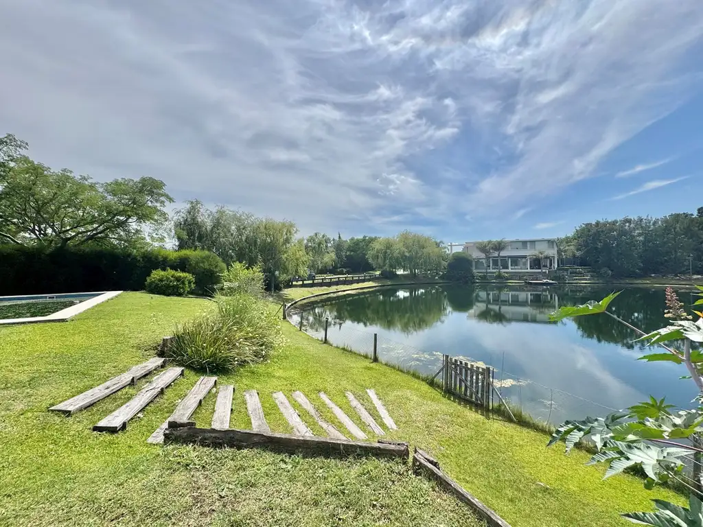 Exterior: galería semicubierta con parrilla y barra, piscina. Cochera semicubierta para dos autos. Hermoso jardín parquizado sobre el lago.