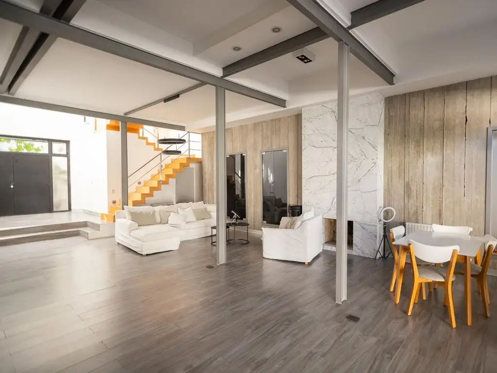 -Comedor integrado, con piso de porcelanato, claraboya que brinda luz natural, estructuras de acero a la vista y sectores de paredes revestidas en mármol.
