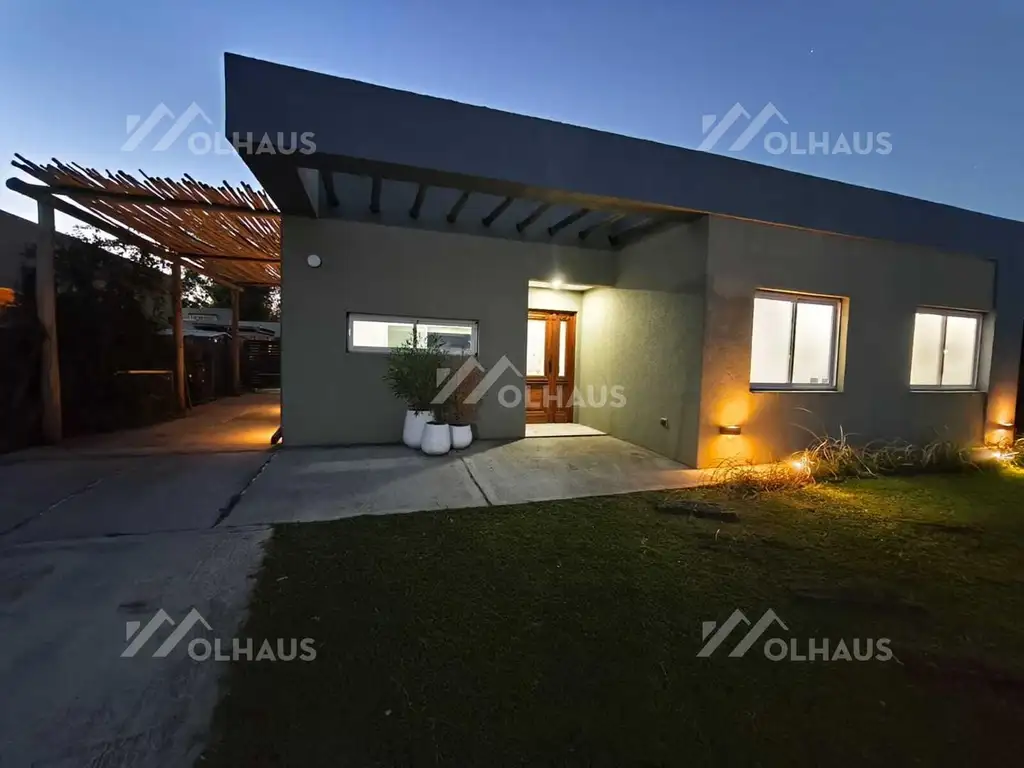 Casa desarrollada en una sola planta, ubicada en cul de sac y a pocos metros del acceso principal del barrio.