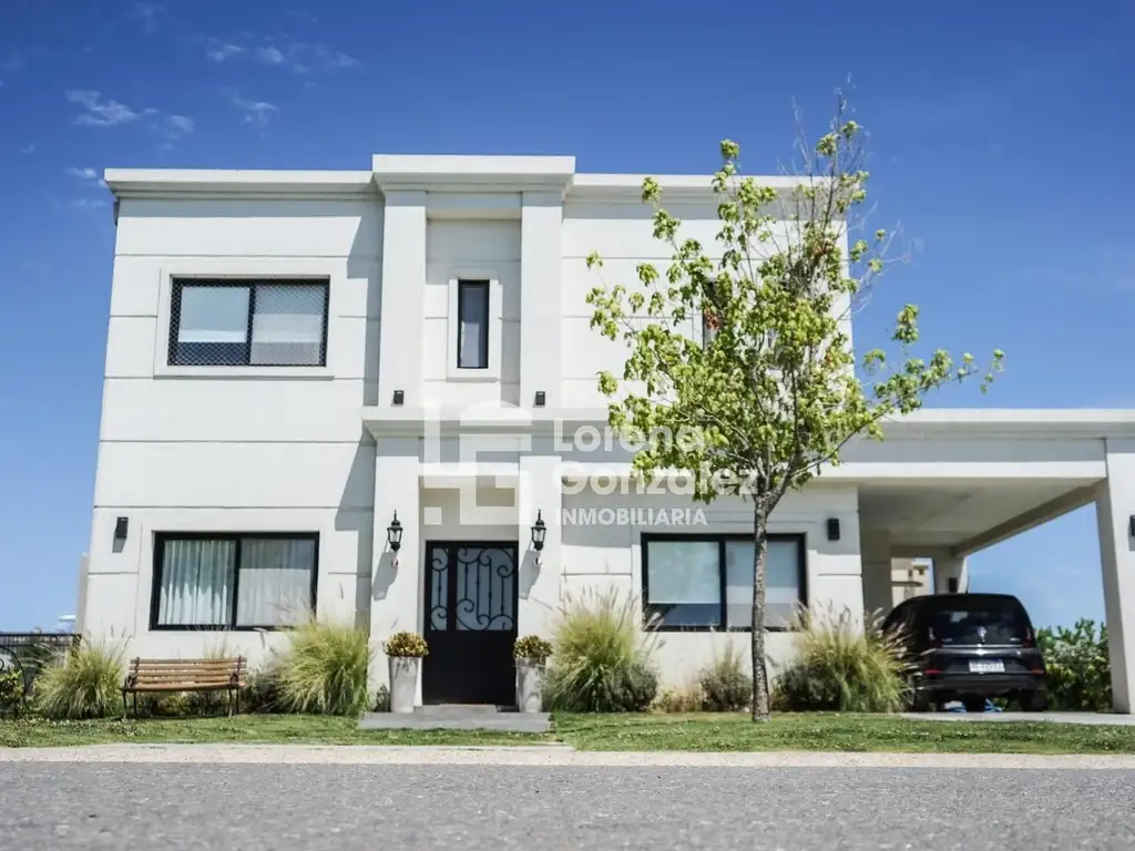 Elegante casa de estilo francés desarrollada en dos plantas, ubicada en el exclusivo barrio Acacias dentro de Puertos del Lago.