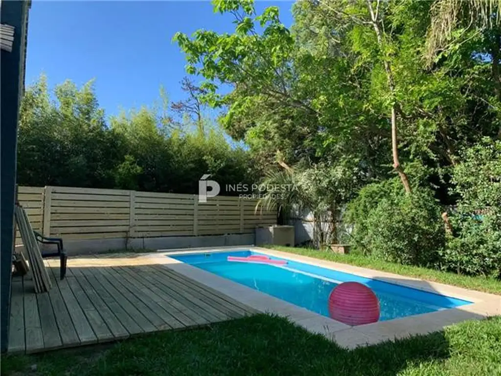 Casa muy linda reciclada! 3 dormitorios, 2 baños (1 suite), totalmente cercada, bien equipada, amplio jardín cercado con piscina climatizada y parrillero techado, cochera. Capacidad para 6 personas.