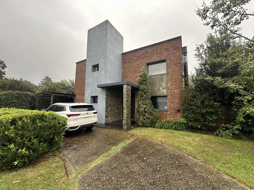Topología: Casa desarrollada en dos plantas. En planta baja: ingreso a living amplio con chimenea y vista al jardín, cocina comedor y baño de ingreso, salida a galería con parrillero y cocheras. Amplio jardín con pileta. En planta alta: Tres dormitorios y baño completo, uno de los dormitorios con vestidor, baño en suit, hidromasaje y balcón terraza.