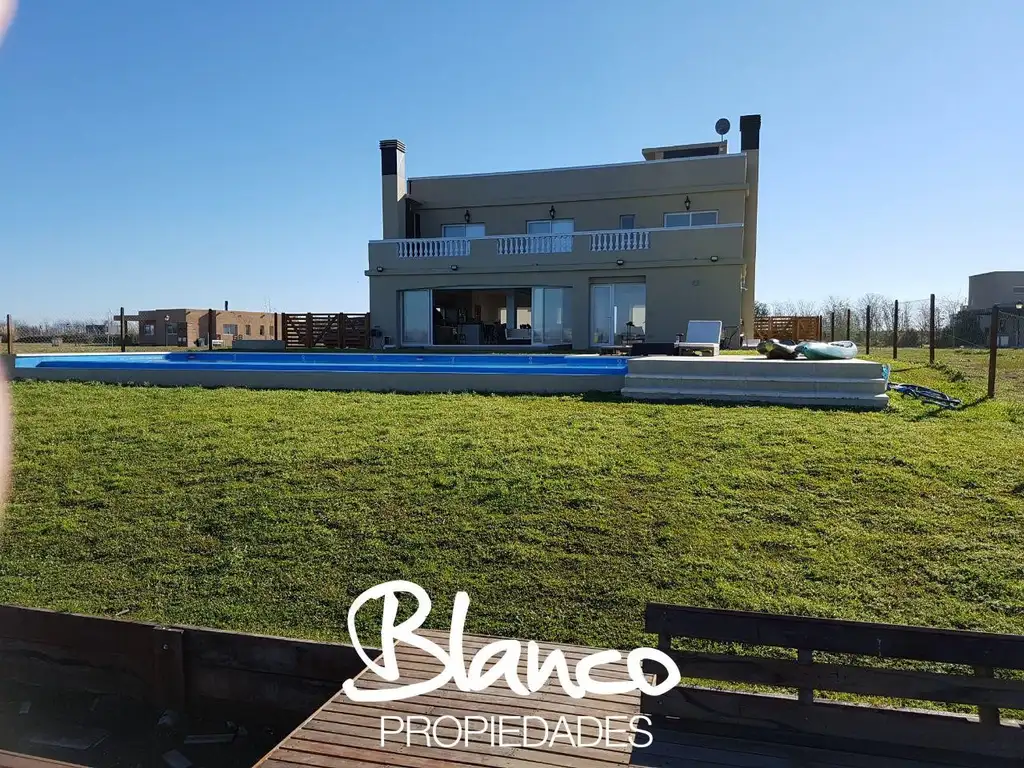 Exterior: Hermoso jardín con gran pileta espejo de 5x14, vista a la laguna y muelle propio para hermosos atardeceres. Cochera semicubierta para 3 autos.