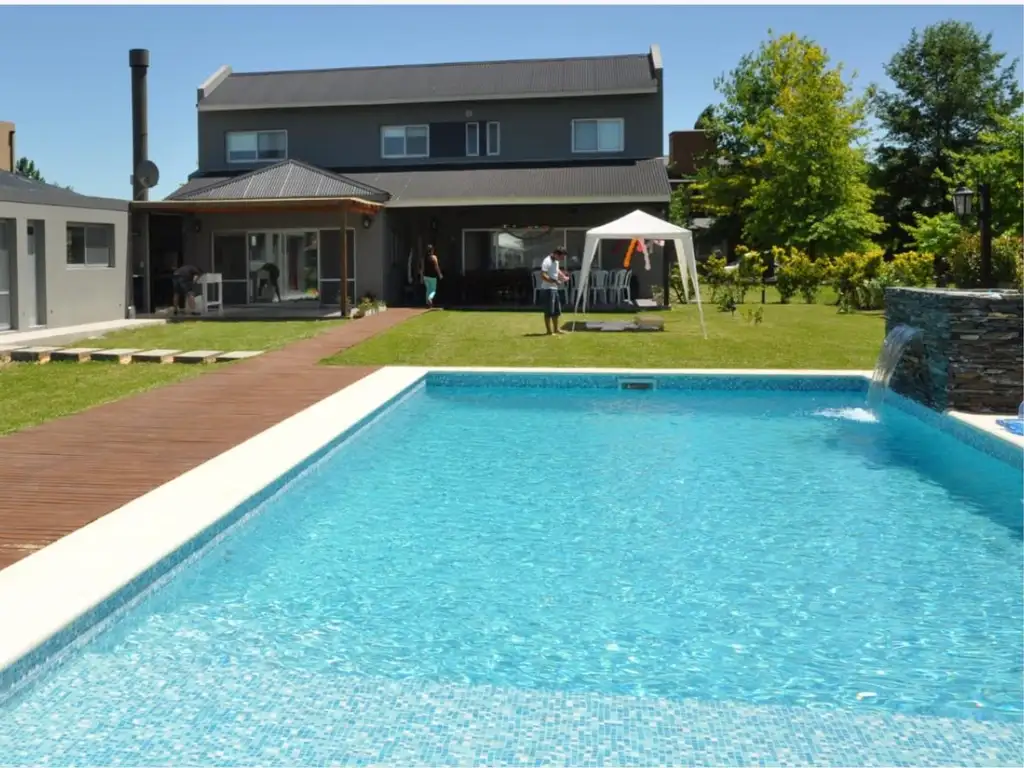 Casa 6 ambientes moderna y luminosa de 300m2 cubiertos y 60m2 semicubiertos. Se encuentra sobre un lote central de 1500m2, a sólo 100m del ingreso principal y piletas de natación, SUM y plazas. La casa cuenta con todos los servicios, está amueblada al detalle con primeras marcas de electrodomésticos y el barrio posee muchos amenities ideales para familias.