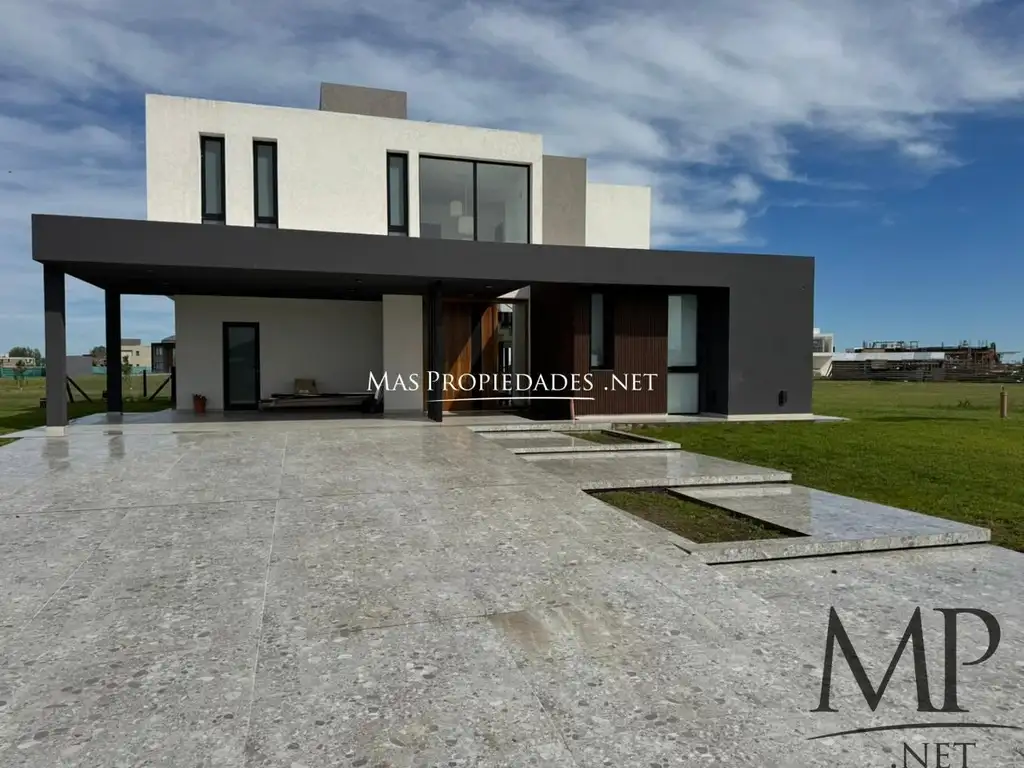 Esta espectacular casa a estrenar ofrece un diseño moderno y funcional, ideal para disfrutar de la comodidad y el estilo de vida que brinda el barrio privado Terralagos. Con una distribución pensada para maximizar el espacio, la planta alta alberga tres amplias habitaciones en suite, cada una con su propio baño, además de un lavadero. La planta baja cuenta con un acogedor dormitorio de invitados, un toilette de recepción y una cocina integrada al living, creando un ambiente cálido y perfecto para el entretenimiento.