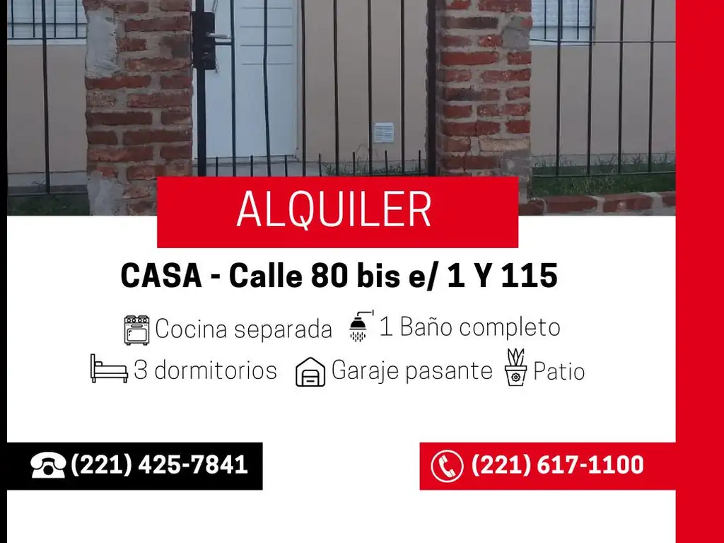 CASA EN ALQUILER DE TRES DORMITORIOS, BAÑO COMPLETO, COCINA COMEDOR .-