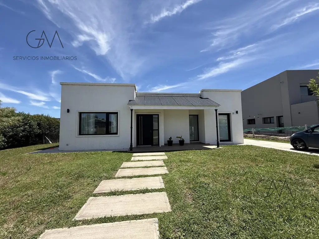 Moderna y luminosa casa de 3 ambientes, desarrollada íntegramente en una sola planta, ubicada en el barrio privado Arenas Chico.