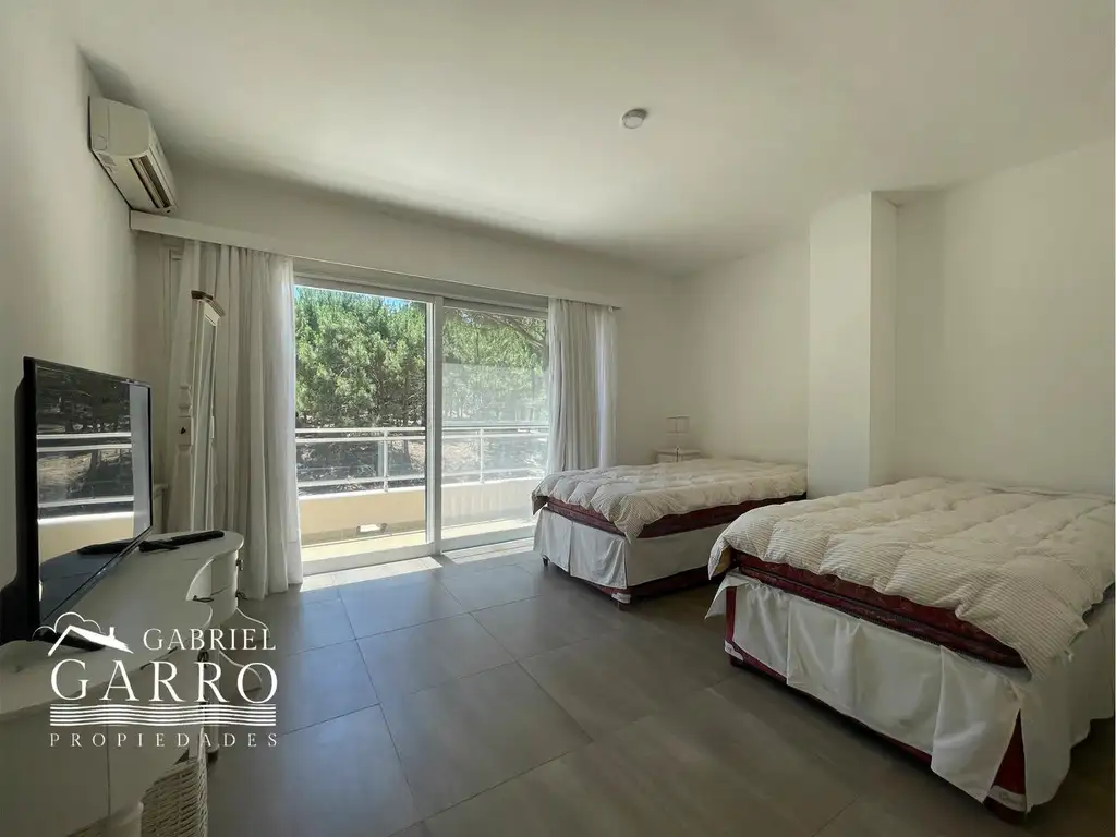 La propiedad tiene amplios y luminosos ambientes con vista en altura hacia frondosos pinares. Cuenta con una cocina con isla y desayunador integrada al comedor diario; y un amplio estar que se conecta con un living con hogar a leña. A su vez, tiene un quincho semi cubierto con parrilla que balconea al parque.