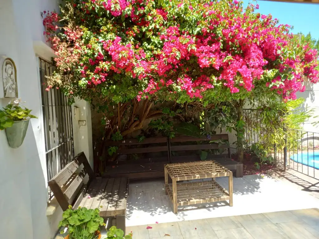 La galería muy acogedora rodeada de verde y flores nos invita a pasar los días de verano. Cuenta con parrilla y una pileta para disfrutar del verano en cada momento. El jardín cálido nos reserva cada lugar para estar en contacto con la naturaleza.