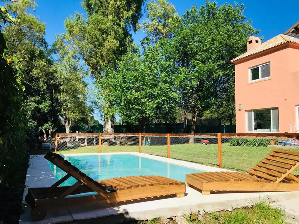 Excelente casa para disfrutar los días de vacaciones en un entorno tranquilo rodeado de verde. La propiedad se encuentra en un barrio con portón, cuenta con amplio parque de 630 mts, pileta de 7x3,5, galería y parrilla.