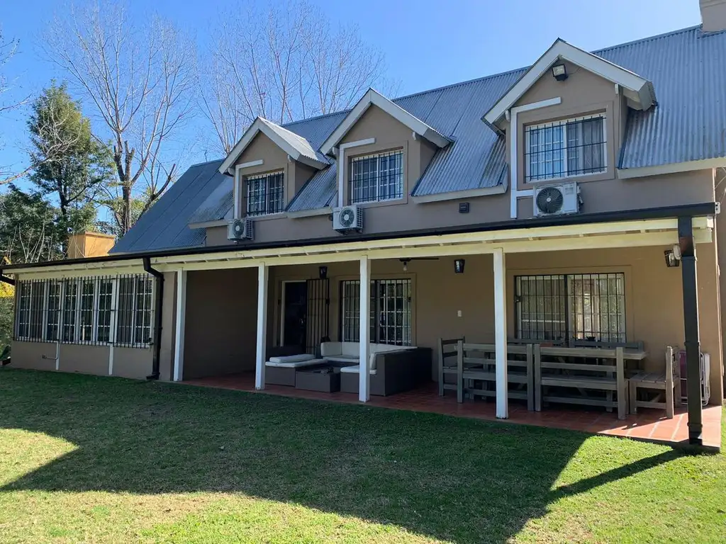 Casa construida en dos plantas , con cocina con comedor diario, comedor, playroom con vista al jardin, galeria, en planta alta , 4 dormitorios, dos de ellos en suite.