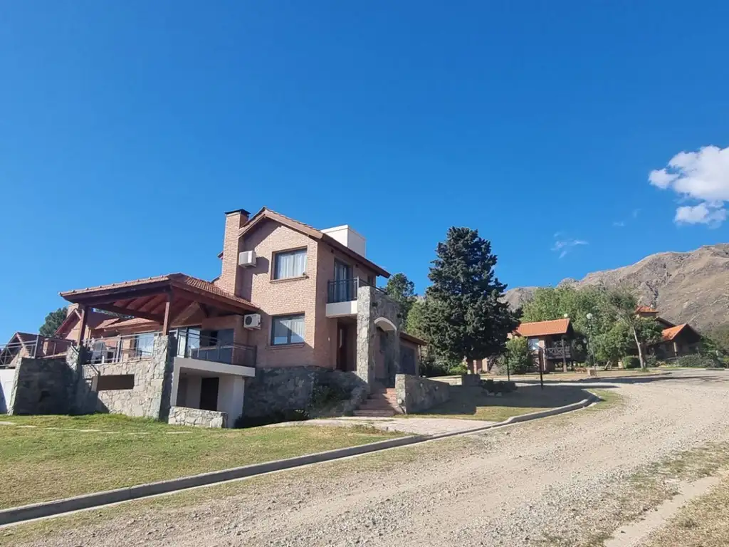 Chalet ubicado en esquina con vistas panorámicas a las sierras y al valle, con dos habitaciones en planta baja, sin desniveles en zona de living comedor cocina.